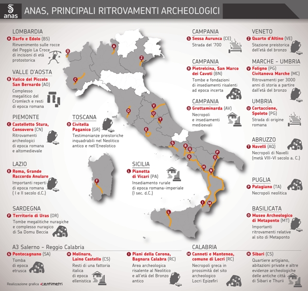 Per dare concreta attuazione alla nuova visione archeologica, lo scorso dicembre 2017 Anas ha pubblicato un bando di gara per l’affidamento dei lavori di scavo archeologico connessi agli interventi sull’intera rete nazionale per un valore di 12,5 milioni di euro. L’appalto, di durata quadriennale, è attivato con la procedura di Accordo Quadro che garantisce la possibilità di avviare i lavori con la massima tempestività nel momento in cui si manifesta il bisogno, senza dover espletare ogni volta una nuova gara di appalto, consentendo quindi risparmio di tempo, maggiore efficienza e qualità.