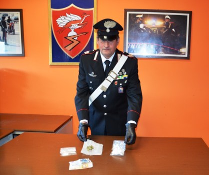Mentre uno dei fuggitivi si è arreso all’evidenza, consegnandosi spontaneamente, l’altro, più giovane d’età, non si è rassegnato, scaraventandosi contro i militari che gli sbarravano il passaggio. Da qui una colluttazione, al termine della quale i carabinieri, sebbene feriti, sono riusciti ad ammanettarlo. A seguito delle perquisizioni personali effettuate sul posto, i due sono stati trovati in possesso: il più giovane, di due involucri di cocaina, del peso complessivo di circa un grammo, di tre telefoni cellulari e della somma di 1.103,00 euro, suddivisa in banconote di vario taglio; l’altro, di 24 bustine termosaldate, contenenti complessivamente 14 grammi circa di eroina, 12 stecche di hashish del peso di 25 grammi circa e della somma di 82,00 euro.