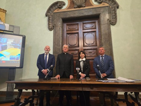 Alla presentazione della riapertura della basilica sono intervenuti la presidente della Regione Umbria Stefania Proietti, l’arcivescovo di Spoleto – Norcia, monsignor Renato Boccardo, il commissario straordinario alla ricostruzione (in collegamento da Roma) Guido Castelli, il sindaco di Norcia Giuliano Boccanera e l’amministratore delegato di Eni Servizi Ledvin Zardini.