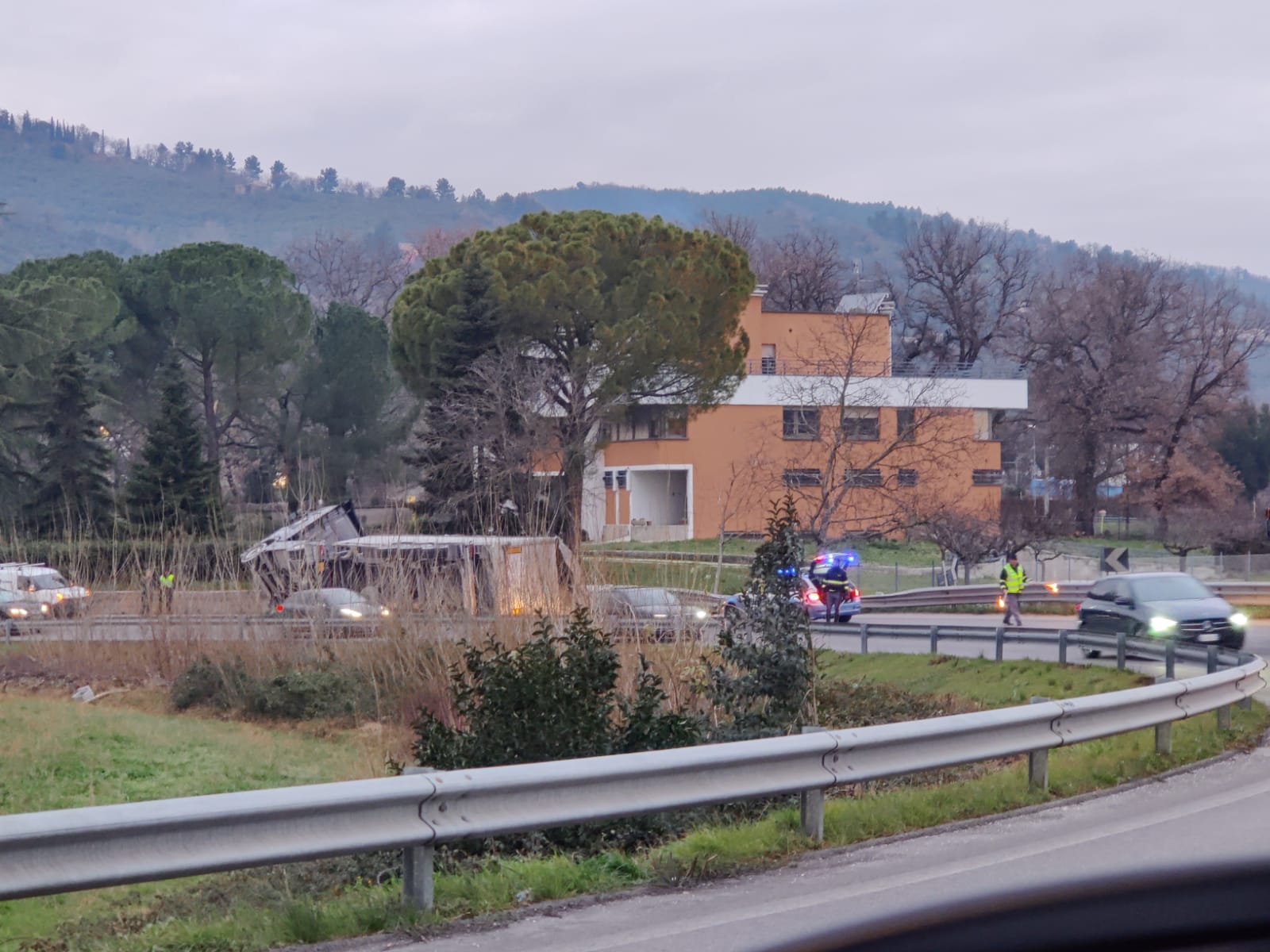 Autotreno ribaltato sulla rampa della SS3 Flaminia, verso la SS75. Il mezzo, proveniente da Spoleto, ha perso il controllo e si è rovesciato su un fianco. Sul posto i carabinieri. Disagi al traffico per la chiusura della rampa, in tutte e due le direzioni.