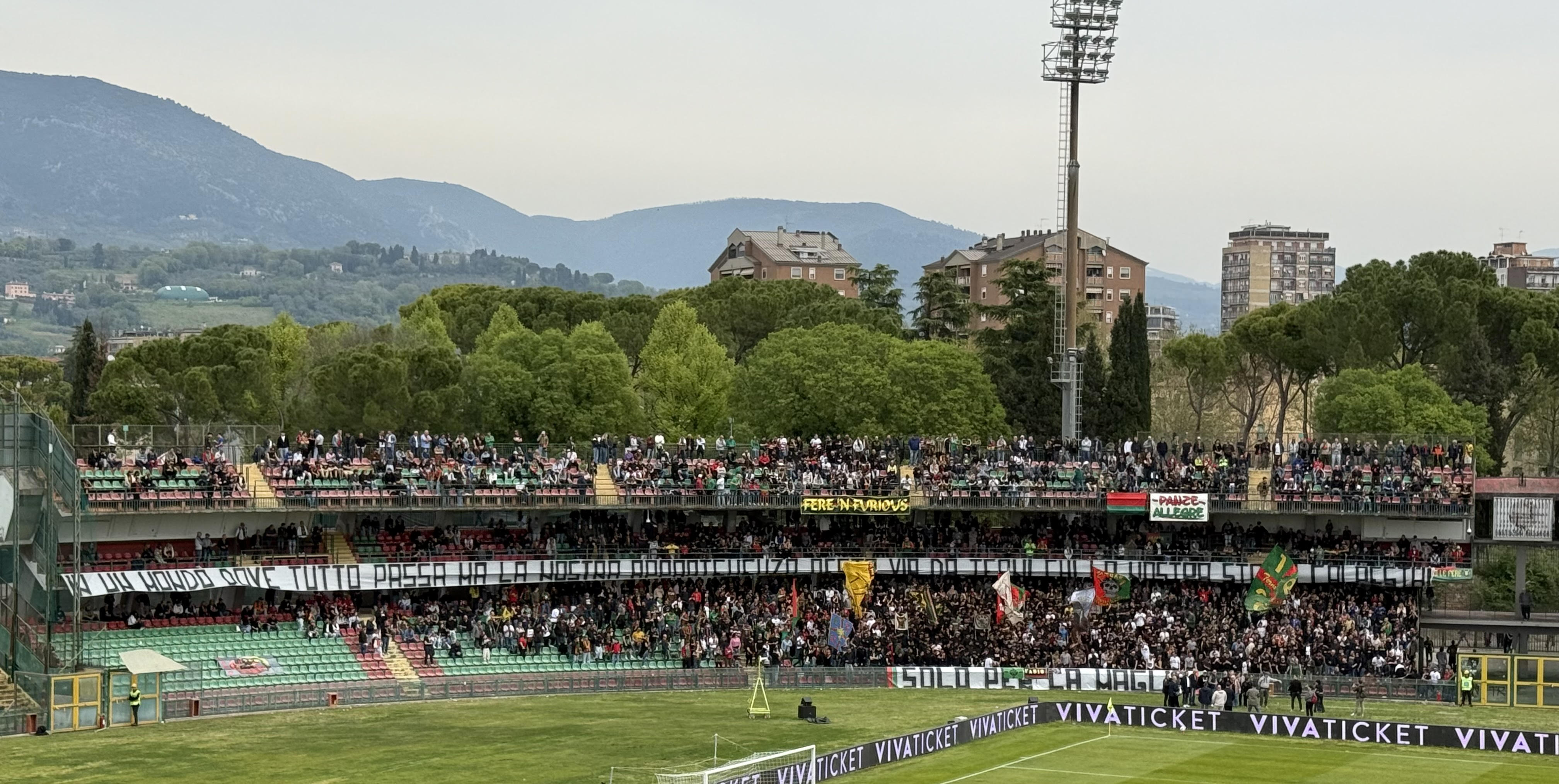 Una giornata da dimenticare per i tifosi della Ternana (e per la città di Terni). E non per la rimonta del Perugia, in un derby che le Fere stavano conducendo 2-0 nel secondo tempo. Il pareggio (2-2) è arrivato al termine di una partita vibrante, con i rossoverdi spinti dalla Curva Nord, dove è apparso un eloquente striscione: “In un mondo dove tutto passa la nostra appartenenza resta. Via da Terni chi lanostra storia calpesta”.