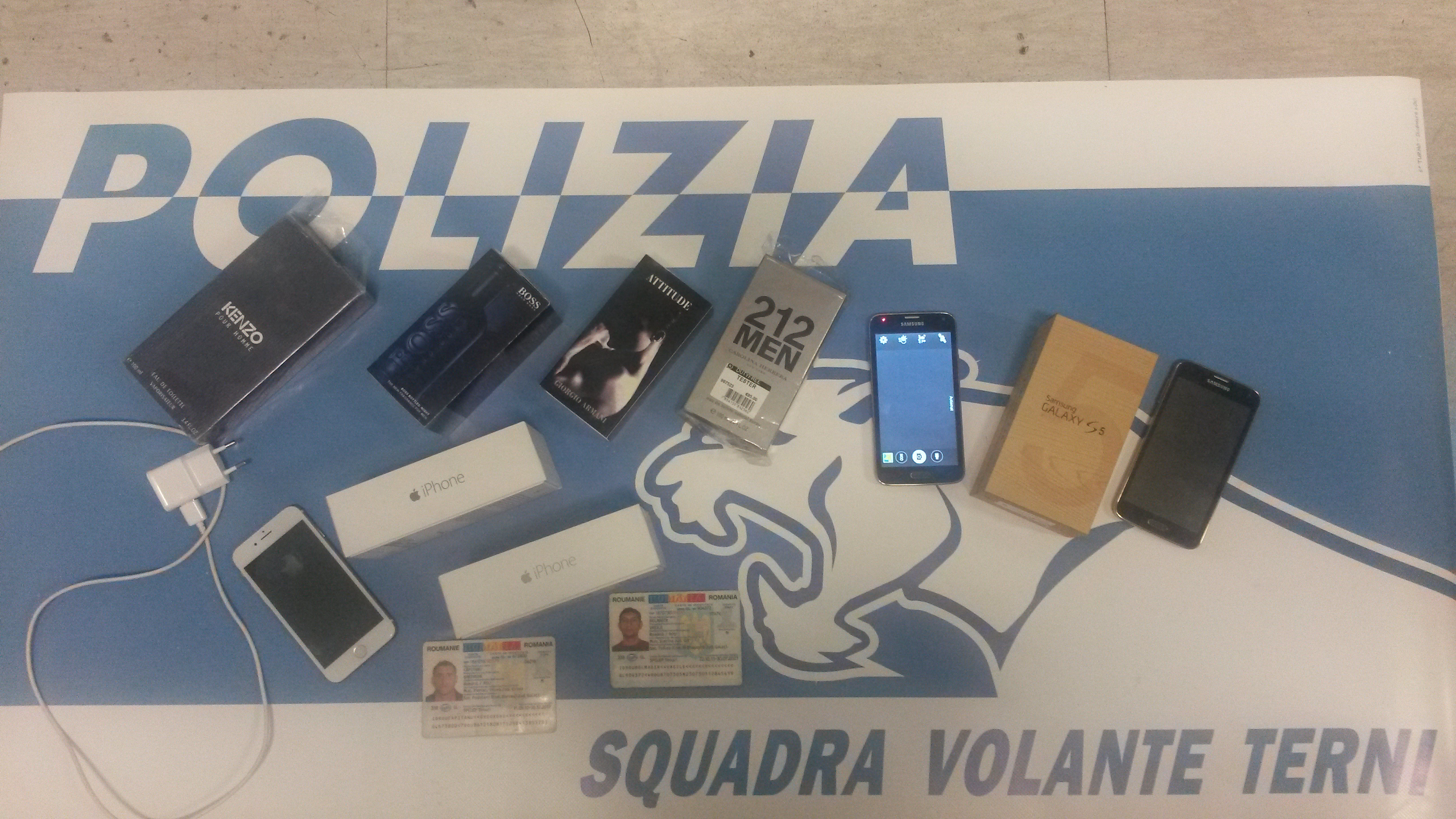 Un’altra autovettura, sempre risultata rubata, è stata ritrovata e restituita al suo legittimo proprietario, un sacerdote residente in provincia. Due cittadini rumeni di 28 anni, senza fissa dimora in Italia, sono stati denunciati per introduzione nello Stato e commercio di prodotti con segni falsi e ricettazione in concorso; erano stati fermati dalla Polizia di Stato in viale Brin perché stavano vendendo della merce in strada. Hanno dichiarato di essere a Terni in visita ad un amico e, con l’occasione, hanno pensato di vendere degli oggetti acquistati a Roma al mercato di Porta Portese: telefoni cellulari e profumi. Dai controlli, è emerso che i due avevano precedenti specifici, la marca dei cellulari è risultata contraffatta e i profumi rubati.