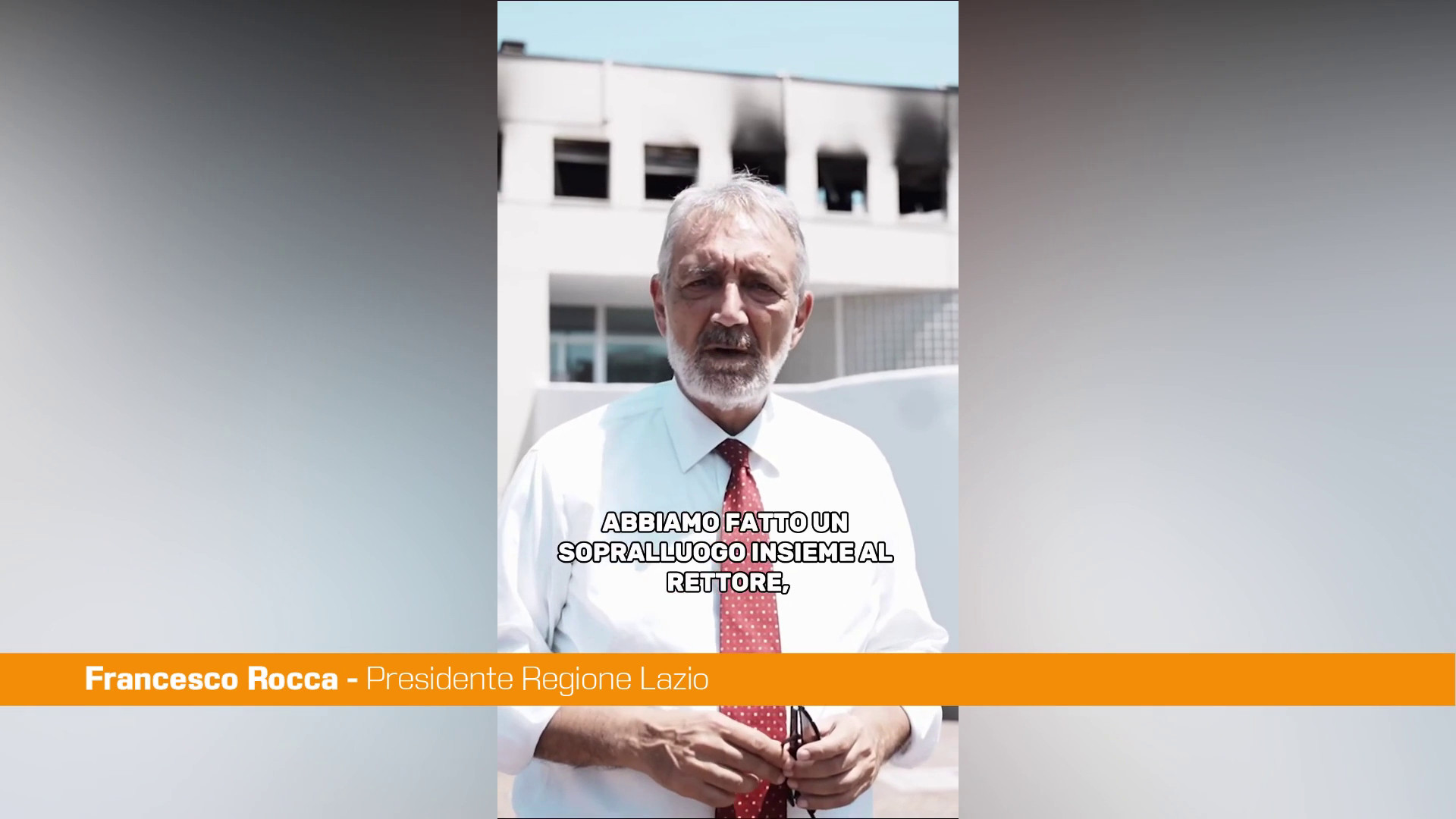 ROMA (ITALPRESS) – “Abbiamo effettuato un sopralluogo insieme alla rettrice e ai consiglieri regionali per constatare direttamente l’entità del danno. Durante un confronto in ufficio con la rettrice, abbiamo condiviso un ragionamento importante: la Regione Lazio ci sarà. Stanzieremo risorse significative e stiamo lavorando con il Governo affinché questa tragedia diventi un’occasione di ripartenza”. Lo ha dichiarato in un video pubblicato su Facebook il presidente della Regione Lazio, Francesco Rocca, dopo un sopralluogo nella facoltà di Agraria di Viterbo.