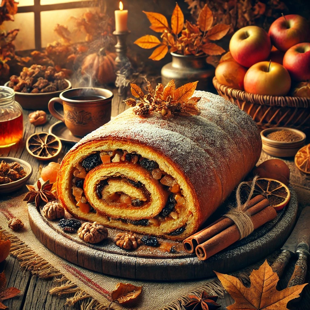 La sua ricetta è un piccolo incantesimo: una sfoglia sottile, quasi trasparente, che avvolge un ripieno generoso e profumato. Mele che sanno di bosco, uvetta dolce come un ricordo d’infanzia, fichi secchi che parlano di estati lontane, noci croccanti che sembrano racchiudere la forza di alberi secolari. E poi le spezie: la cannella, calda e confortante, e il cacao, con la sua nota profonda e misteriosa. Ingredienti semplici, scelti con cura, che si fondono in un intreccio di sapori, regalando un dolce che sa di famiglia, di festa, di vita vissuta. La ricetta tradizionale è una fusione di colori, sapori e profumi: