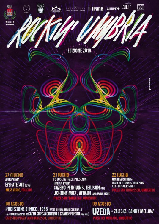 Vero e proprio punto di riferimento per tutti gli appassionati di musica e sottoculture giovanili in Umbria negli anni ’80 e ‘90, Rockin’ Umbria continua a percorrere il nuovo cammino intrapreso nelle ultime edizioni. Con il patrocinio e il supporto del Comune di Umbertide, in collaborazione con l’associazione culturale St.Art, l’etichetta indipendente To Lose La Track e l’associazione Effetto Cinema, nel 2018 il festival ritorna sperimentando una formula articolata tra luglio e agosto: il 21 e 22 luglio nella location di piazza San Francesco, con alcuni appuntamenti nel chiostro adiacente e nella vicina chiesa di Santa Croce, l’8 agosto nel chiostro di piazza San Francesco e il 9 agosto in piazza del Mercato, ai piedi della storica cornice della Rocca. Tutti gli eventi, a eccezione della serata di mercoledì 8 agosto, saranno a ingresso gratuito.