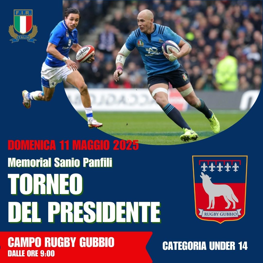 Domenica 11 Maggio oltre 200 ragazzi Under 14 scenderanno in campo al Coppiolo di Gubbio per la prima edizione del Torneo del Presidente “Memorial Sanio Panfili”, dedicato al fondatore e primo Presidente del Rugby Gubbio.
