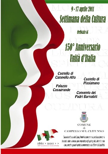 Sabato 9 Aprile alle ore 11.00 presso il torrione del Castello di Campello Alto (Loc. Campello Alto) si terrà la presentazione della Settimana della Cultura. Quest’anno l’Amministrazione comunale aderendo alla XIII Settimana della Cultura promossa dal Ministero per i Beni e le attività culturali, ha scelto di dedicare al 150esimo anniversario dell’unità d’Italia, la serie di eventi previsti a Campello sul Clitunno nei week end 9- 10 e 16- 17 aprile.