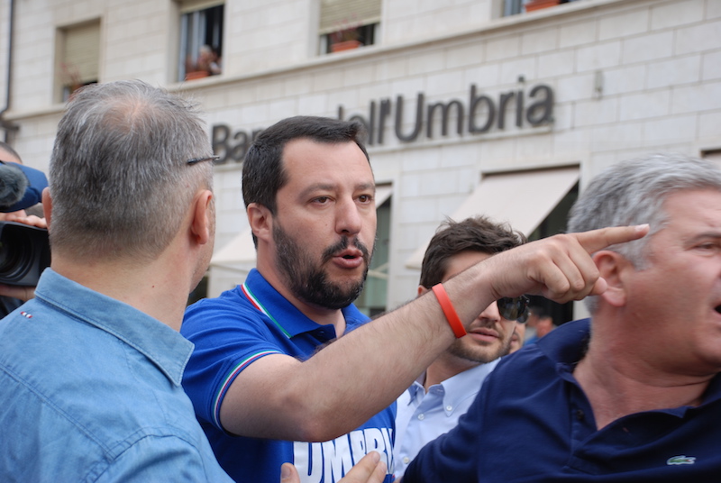 Il programma del tour elettorale di Salvini oggi in Umbria: MONTEFALCO (ore 9, piazza Comune), MARSCIANO (ore 10.40, via Vittoria), CITTA’ DI CASTELLO (ore 12.15, centro storico), SAN FELICIANO (ore 14.30), MAGIONE (ore 15.30, Mercatone Uno), BASTIA UMBRA (ore 16.30, Umbria Fiere), PERUGIA (ore 18.30, piazza del Bacio), VALFABBRICA (ore 20.45), GUALDO TADINO (ore 22, piazza Comune).