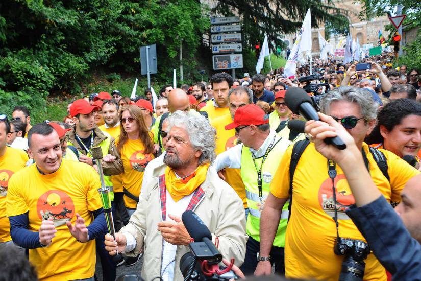 La marcia per il reddito di cittadinanza in Umbria sulle orme dei francescani. In testa un Beppe Grillo tedoforo con la fiaccola della “verità” in mano. Nessuno è scalzo, uno in saio, tutti hanno un bel cellulare per i selfie. Il tragitto da Perugia ad Assisi è scandito dal botta e risposta ai tweet di Renzi. Chissà Aldo Capitini, che questa cosa che si chiama “Marcia della Pace” se l’è inventata cosa ne penserebbe… Occhi dell’Italia puntati sull’Umbria ieri per osservare il popolo M5S che ha solcato il tracciato del pacifista per “sconfiggere la povertà”. “I veri francescani siamo noi”, e allora non è più un’ipotesi ma una certezza l’intento di accostarsi alle simbologie di San Francesco. “Noi siamo nati il 4 ottobre, noi siamo come i francescani”, parola di Beppe Grillo da Assisi.