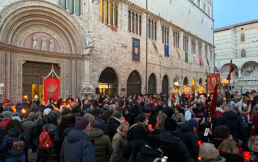 La processione ha attraversato tutto il centro storico, procedendo, torce alla mano, lungo via Fani, Piazza Matteotti, via Oberdan, le Scalette di Sant’Ercolano, i Tre Archi, Corso Cavour e Borgo XX Giugno.