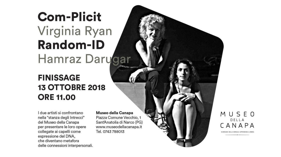 Nel dettaglio, sabato 13 ottobre 2018, presso il Museo della Canapa si terrà dalle 10:30 alle 13:00 il Finissage di Com-plicit e Random-ID, opere d’arte realizzate da Virginia Ryan e Hamraz Darugar, attualmente esposte all’interno della “Sala degli Intrecci” del Museo della Canapa.