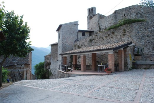 Più in alto, a 926 metri di altitudine, si trova invece Monte San Vito, la frazione più alta di Scheggino, perfettamente allineata con gli abitati di Civitella e Ceselli. La sua origine si fa risalire al XII secolo, come parte di un sistema di difesa che circondava il feudo dell’abbazia di San Pietro in Valle. Ben presto, però, Monte San Vito ottenne l’autonomia amministrativa, che conservò anch’essa fino alla fine del XIX secolo. Della torre di avvistamento, ricordata anche nella toponomastica del paese, e delle mura di difesa restano soltanto labili tracce, accentuate principalmente in una delle due porte di accesso. La porta è preceduta da un piazzale con fontana e abbeveratoio e seguita da un portico. Al centro del paese è inserita la chiesa di San Michele Arcangelo ( XIII secolo). Ad un edificio più antico sembra appartenere il portale in stile romanico rimontato nella parete laterale. L’interno, a navata unica con abside, è stato rinnovato nella seconda metà dell’Ottocento alterando l’impianto originario. Fuori del paese, affacciata sulla valle, c’è la chiesa di Santa Maria (XVI secolo), costruita sopra la chiesa romanica di San Leonardo, di cui si scorgono i resti nella parete absidale.