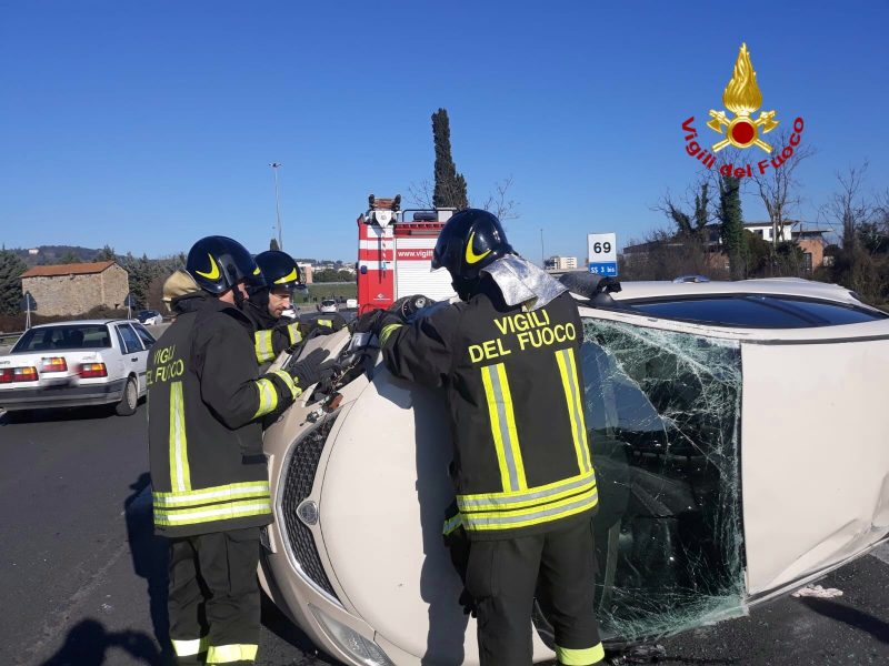 L’utilitaria, dopo aver sbattuto contro le barriere di protezione, si è rovesciata su un fianco. Solo lievi ferite, fortunatamente, per la persona alla guida della Y. Illeso l’altro automobilista.