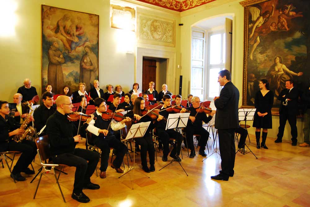 Applaudite performance quelle della Scuola di Musica e Danza “Alessandro Onofri” che in occasione degli Eventi di fine Anno si è esibita nei giorni scorsi in due differenti concerti, il primo alla Sala Convegni della Caserma Garibaldi, il secondo al Complesso Monumentale di San Nicolò. Per entrambi le occasioni è stato proposto un repertorio, eseguito intermente dagli oltre 40 allievi dell’istituto musicale, di brani della tradizione melodica natalizia, antichi corali, canti gregoriani e spiritual ma anche capolavori sinfonici come l’Inno alla Gioia di Beethoven e di brani dal Peer Gynt di Grieg.