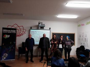 La lezione, di fronte ad una cinquantina di studenti, sarà tenuta dal team di Rgs: Francesco Pellovini, Giorgio Contilli, Isabetta Esposito, Azzurra Pellovini ed Elena Giansiracusa. Il pomeriggio dalle 17 alle 19 sarà la volta degli alunni della III media della scuola secondaria T.Valenti di Trevi che, fatte le ore teoriche, si prepareranno ad andare in onda