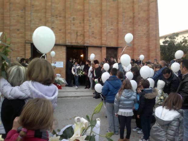 Sono distrutte per la morte di Andrea le maestre dell’istituto comprensivo che il piccolo frequentava fino ad una settimana fa. Gli hanno scritto una lettera commovente, che il parroco ha letto all’uscita del feretro dalla chiesa. “I tuoi sorrisi hanno illuminato la nostra scuola, i tuoi compagni dicono che tu sei vivo in Paradiso, con tante caramelle, cioccolatini e giocattoli”. Erano proprio accanto alle maestre i compagni di scuola dello sfortunatissimo bambino. Hanno pregato per il loro amichetto e lanciato in aria tanti palloncini bianchi, con la speranza che Andrea li possa raccogliere in paradiso, dove riposa ora.