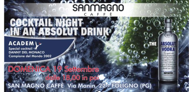 L'evento “Cocktail night in an absolut drink” di domenica ha richiamato un pubblico selezionato e numerosissimo, che ha potuto gustare gli “Special cocktail” del super professionista Danny del Monaco, campione mondiale nel 2002.