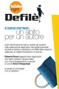 Sette gli autori individuati come ispiratori: Allende, Maraini, Moravia, Montale, Pasolini, Pirandello e Svevo. Attraverso la lettura delle loro opere gli studenti hanno saputo orientarsi nella creazione sia di abiti che di gioielli che verranno mostrati al pubblico nella serata di giovedì 27 maggio a partire dalle ore 21.00. Si tratta di un biblionight davvero speciale dove la lettura incrocia l'arte creativa attraverso una sfilata di moda che porterà in passerella gli abiti dell''Istituto d'Istruzione Superiore Allevi-Pertini e i gioielli realizzati del Liceo artistico Metelli. Ad accompagnare la sfilata ci saranno le letture di alcuni brani degli autori scelti a cura di Roberta Rossi e la musica della violinista Anna Chiappelli. La sfilata verrà presentata da Francesco Patrizi e si concluderà con la premiazione dei vincitori per le due categorie, abito e gioiello e con un brindisi. In palio due capi d'abbigliamento donati dallo sponsor della serata Conti s.r.l. e due targhe per le scuole partecipanti donate dalla biblioteca di Terni.
