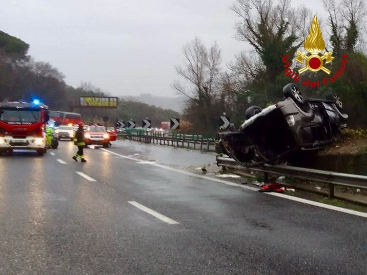 Si ribalta e l'auto prende fuoco, chiuso e riaperto il Raccordo | Immagini - Tuttoggi.info