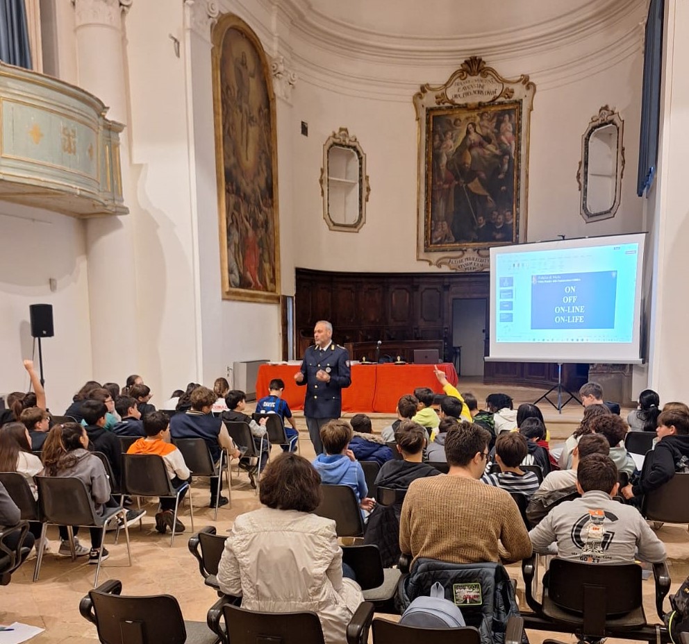 I poliziotti si sono confrontati, all’interno della suggestiva location dell’auditorium Sant’Agostino messo a disposizione dal Comune di Città della Pieve, con le ragazze ed i ragazzi della scuola secondaria di primo grado, approcciando con loro le strategie corrette per navigare in sicurezza nel web.