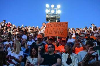 Una marea arancione ‘carota’ ha colorato gli spalti del Centrale del Foro Italico, esibendo cartelloni e striscioni. Da un classico “Bentornato Jannik” fino alla foto del numero uno del mondo con una corona in testa, affiancato da Nick Kyrgios, che negli scorsi mesi ha intrapreso una vera e propria crociata contro di lui per il caso Clostebol, raffigurato in lacrime. “Er cavaliere roscio is back” ha scritto un tifoso, prendendo liberamente spunto dall’iconico ‘Cavaliere Nero’ di Gigi Proietti, mentre un bambino alza un cartellone più romantico: “Sinner fa rimbalzare i nostri cuori”.