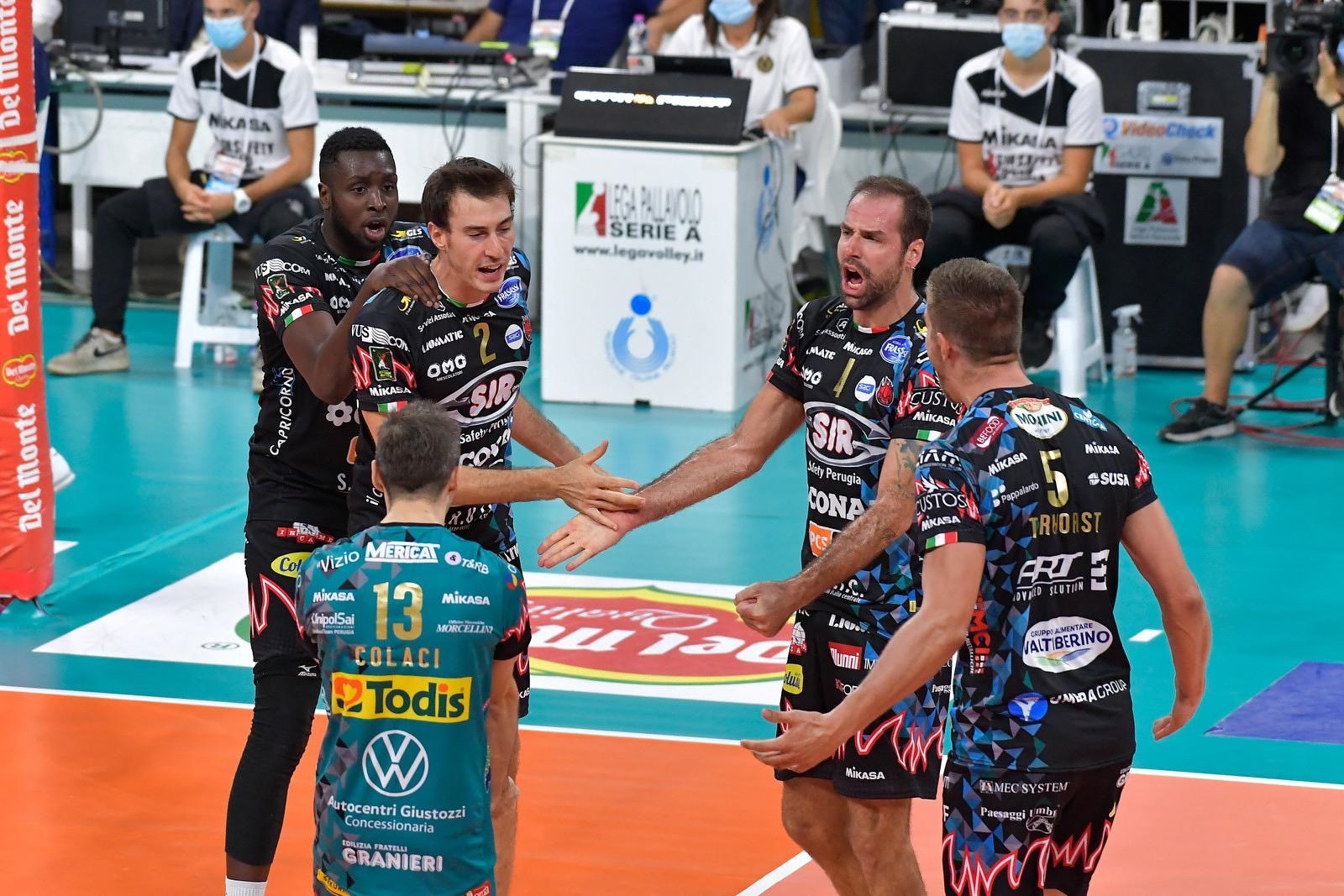SIR SAFETY CONAD PERUGIA: Travica-Vernon-Evans, Ricci-Solè, Leon-Plotnytskyi, Colaci libero. All. Heynen.
