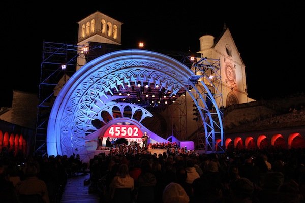 Le voci più belle del panorama artistico italiano, unite per una causa umanitaria nella piazza di una delle città più incantevoli dItalia. Negli anni si sono esibiti sul palco assisano: Andrea Bocelli, Lucio Dalla, Renato Zero, Roberto Vecchioni, Nek, Noemi, Tiziano Ferro, Massimo Ranieri, Claudio Baglioni, Gino Paoli e i Pooh per citarne alcuni.