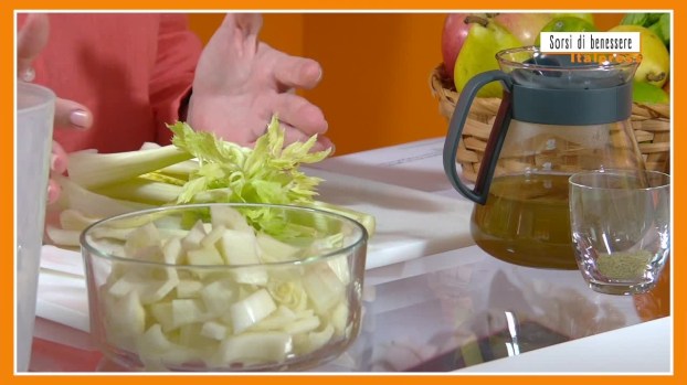 Per la rubrica “Sorsi di benessere”, Angelica Amodei illustra la preparazione di un estratto diuretico e antiossidante: tra gli ingredienti finocchio, sedano e tè matcha.