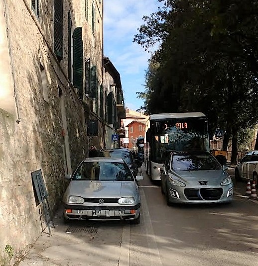 “Perugia è sempre più impraticabile per i pedoni. Stamattina ho avuto la cattiva idea di scendere da Porta Pesa per via XIV Settembre: era impercorribile. Stando a sinistra, prima sono stato costretto a spostarmi a destra. Poi a camminare in mezzo alla strada perché il marciapiede ero occupato dalle solite auto in divieto di sosta autorizzata dal Comune. Finché ho trovato una barriera di auto che salivano, di auto che scendevano bloccate dagli addetti ai lavori, con un autobus che faceva da tappo. Ed io in mezzo alla strada che cercavo un pertugio per passare facendo lo slalom tra quell’ammasso di auto“.
