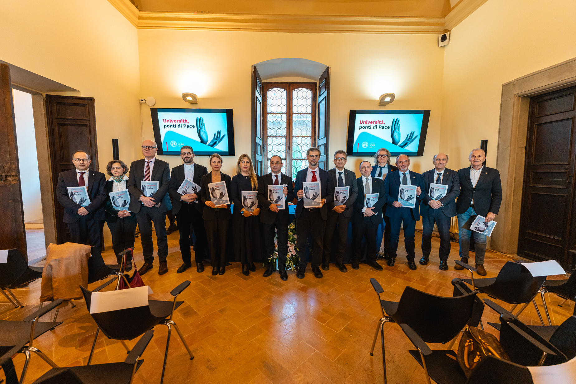 Il documento è condiviso e sottoscritto, insieme all’Università degli Studi di Perugia con il Magnifico Rettore, Prof. Massimiliano Marianelli, dalla Université Catholique de Lyon – Rettore Prof. Gregory Woimbée, dalla Universidad de Guadalajara – Rettrice Prof.ssa Karla Planter Pérez, dalla Agricultural University of Tirana rappresentata dalle Delegate del Rettore Prof.ssa Erinda Lika e Prof.ssa Koto Romina, dalla Université Clermont Auvergne – Delegata del Rettore Prof.ssa Marie-Elisabeth Baudoin, dall’Università degli Studi di Siena – Delegato del Rettore Prof. Gianluca Navone, dall’Università degli Studi di Macerata – Rettore Prof. John Francis McCourt, da Sapienza Università di Roma – Delegato della Rettrice Prof. Fabio Sciarrino, dall’Università degli Studi di Firenze – Delegata della Rettrice Prof.ssa Maria Paola Monaco, dall’Università degli Studi di Camerino – Rettore Prof. Graziano Leoni, dall’Università degli Studi di Urbino “Carlo Bo” – Rettore Prof. Giorgio Calcagnini, dall’Università degli Studi dell’Aquila – Rettore Prof. Fabio Graziosi, dall’Università per Stranieri di Perugia – Rettore Prof. Valerio De Cesaris, dall’Università del Salento – Prorettore Prof. Salvatore Rizzo, dall’Università degli Studi “G. D’Annunzio” Chieti-Pescara – Rettore Prof. Liborio Stuppia e dall’Università Politecnica delle Marche Rettore Prof. Enrico Quagliarini.