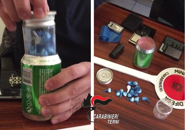 Nel pomeriggio precedente, i Carabinieri della Stazione di Terni sono intervenuti all’interno di un’altra abitazione della prima periferia ternana, sottoponendo a controllo un uomo italiano, classe ’75, ternano, rinvenendo questa volta, ben celate all’interno del frigorifero, 15 dosi di cocaina dal peso complessivo di 16 grammi, contenute in bustine termosaldate. La particolarità, questa volta, è riferita all’ingegno sconfinato messo in atto dallo spacciatore che, convinto di non essere mai scoperto, è arrivato a nascondere la sostanza in una lattina di birra abilmente modificata, con all’interno un contenitore in vetro, riposta proprio nel frigorifero. Naturalmente, il trucco non è valso a salvarlo dalla denuncia.
