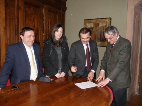 E' stato ufficialmente firmato questa mattina l'accordo tra il Comune di Spello e l'Azione cattolica per il contratto di usufrutto del convento di San Girolamo. All'incontro erano presenti il sindaco Sandro Vitali, gli assessori Letizia Lillocci e Omero Caroli, il segretario regionale dell'Azione cattolica Luigi Borgiani e Dario Quarta della Fondazione Valenti.