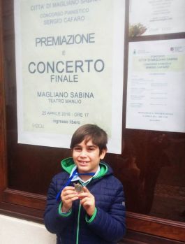 Ricciarelli, di otto anni, si è classificato al II posto al XIV edizione del Concorso di esecuzione musicale “Città di Magliano Sabina”, con la votazione 90/100. Il concorso si è svolto al Teatro Manlio di Magliano Sabina sabato scorso alla presenza di una giuria composta da 5 docenti di pianoforte nei conservatori di Avellino, Campobasso e Frosinone ed ha visto la partecipazione di molti giovani musicisti.