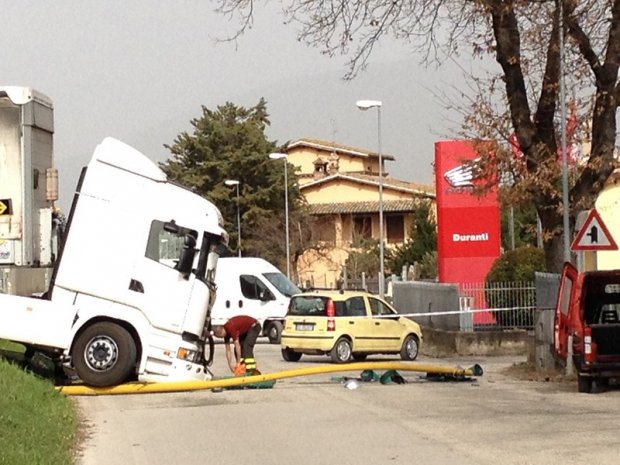 I Vigili del Fuoco, dirimpettai della ditta Tattini, sono intervenuti nel giro di pochi secondi bloccando l’accesso alla zona con un loro mezzo, così come hanno fatto dal lato opposto i Vigili Urbani. Verosimilmente la strada potrebbe rimanere chiusa al traffico per qualche ora: da Perugia dovrebbe infatti arrivare la gru con cui i Vigili del Fuoco contano di poter rimuovere il mezzo dalla strada.