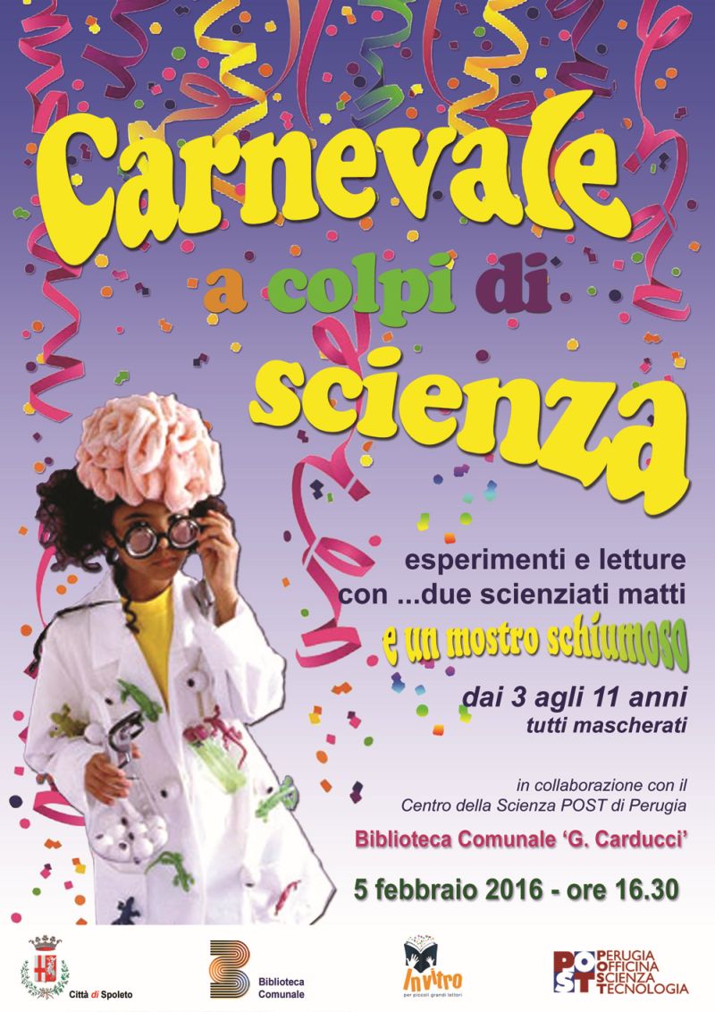 La Biblioteca Comunale organizza insieme al POST (Officina della Scienza e della Tecnica di Perugia), centro umbro impegnato nella divulgazione scientifica, una festa sul tema del Carnevale dedicata a bambini e ragazzi dai 3 agli 11 anni.