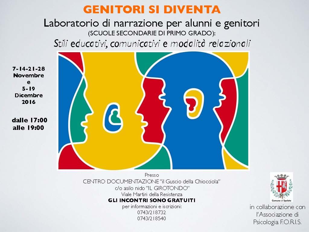 Il Comune di Spoleto, in collaborazione con l’Ass. F.O.R.I.S. avvia un laboratorio di narrazione per genitori e figli dal titolo“ Genitori si diventa”.