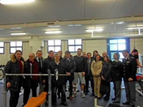Foto di gruppo della II Commissione consiliare permanente della Provincia di Perugia, presieduta da Giampiero Fugnanesi, con il pugile olimpionico plurimedagliato Roberto Cammarelle. L’inaspettato, quanto gradito incontro, ha avuto luogo nella palestra della Scuola della Polizia di Stato di Spoleto dove la nazionale italiana di boxe si sta allenando in vista dei prossimi appuntamenti sportivi. Un sopralluogo all’Istituto per Sovrintendenti, che ha permesso di consolidare la convinzione, già espressa con un ordine del giorno – presentato dal consigliere Gianpiero Panfili e fatto proprio dalla II Commissione – approvato all’unanimità dal Consiglio provinciale, che la “Scuola” e il suo significativo indotto, sono una risorsa per l’Umbria e quindi vanno salvaguardati. La delegazione, accolta con calore dal direttore dell’Istituto, dottoressa Teresa Bifulco, è stata accompagnata in visita all’imponente struttura dal dottor Moreno Elia (rappresentante del Sap) e dalla dottoressa Enza De Fusco, vicequestore aggiunto.