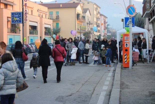 E' sempre una curiosità irresistibile andare a vedere come una via si trasforma quando viene chiusa al traffico e si tramuta invece in qualcosa di molto diverso da come la si è sempre conosciuta. Via Marconi a Spoleto chiusa dal ponte della ferrovia fino alla rotonda del Sacro Cuore, fa pensare a problemi tecnici di qualche natura. Mai vista così da anni in effetti. E invece ieri pomeriggio (25 novembre ndr.), quella via che in alcune ore del giorno e del pomeriggio è una affollata e problematica arteria di traffico nella parte bassa della città, si è tramutata una comoda “avenue” di una qualche città europea, con negozi aperti e molta gente a spasso. E pensare che la giornata non era nemmeno una delle migliori. Un timido sole ha appena riscaldato il primo pomeriggio, mentre già alle 17,30 la nebbia era tornata a farla da padrona. E nonostante questo, l'esperimento fortemente voluto dalla neocostituita Associazione Il Bruco è riuscito con successo. Famiglie con i loro bambini, e tante altre persone di tutte le età passeggiavano con gusto al centro della strada, che per qualche motivo di prospettiva sembrava anche più grande di quello che è. Sarà l'abitudine a sfrecciarci sopra in auto, ma nel momento in cui tutto rallenta o si ferma, l'occhio percepisce cose che non si era mai soffermato a vedere con attenzione. In questo l'idea de “Il Bruco” è stata decisiva per far capire che una via commerciale non è solo fretta e auto e posto macchina in cui parcheggiare per correre a comperare e scappare via di nuovo. Il presidente del nuovo sodalizio di via, Leonello Spitella è contento, anche se non nasconde che per riuscire a dare vita a questa iniziativa, è stata ancora una volta una “scalata”. Ma la soddisfazione lascia il posto alla stanchezza, e una coppia di anziani che passeggiava comodomente in mezzo all'addobbo di grandi vasi con piante di ulivo del Vivaio Bocci ( oltre 40, tutte al cento della strada ndr.), ferma Spitella, lo saluta e apostrofa decisa ” Leonè, magari sempre, è così bello passeggiare qui”. E il senso della giornata sta tutto nella voce decisa di questi due “giovani” dall'occhio lungo. I commercianti fuori dalle loro attività ad accogliere gli avventori, qualche bancarella di artigianato, le auto d'epoca esposte, una banda di animatori con palloncini da regalare e un paio di Elfi che preannunciano il Natale. Percarità, tutto perfettibile e sicuramente la prossima volta la cosa avrà ancora più appeal, ma per il momento lo scopo era proprio quello di far capire che si può chiudere al traffico una strada e consentire alle persone di passeggiare ed essere anche accolte dagli stessi commercianti, con dolcetti, bruschetta e bevande, per stare ancora più “comodi”, oltre la pretesa del parcheggio a tutti i costi. Una intuizione, per questo luogo specifico di Spoleto, Via Marconi, che stando ai propositi de “Il Bruco”, potrebbe diventare un appuntamento fisso. Di sicuro un interessante biglietto da visita dell'Associazione.