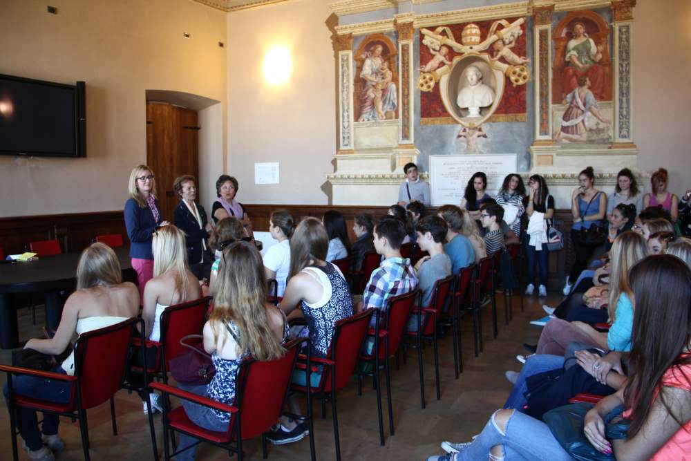 Una delegazione di ragazzi del “Cornelius Burgh Gymnasium” di Erkelenz, accompagnati dalla professoressa Stephanie Nonn e dalla Professoressa Anna Maria Garofoli, dell’Istituto di Istruzione Superiore “Pontano Sansi – Leoncillo Leonardi”, ha incontrato stamani a Palazzo comunale l’assessore all’Istruzione, Formazione e Lavoro del Comune di Spoleto Battistina Vargiu.