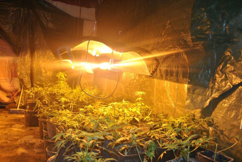 La Polizia,  nel corso della perquisizione effettuata all’interno delle varie zone del casolare oltre ad un annesso, adibiti per la coltivazione intensiva, ha scoperto anche due ambienti completamente attrezzati per la produzione di marijuana. La prima stanza era stata adibita per la crescita delle piante al primo stadio, subito dopo la loro semina; nella seconda invece  venivano tenute e curate le piante che erano nella seconda fase di crescita. Infatti la prima stanza era stata coibentata con enormi teli in plastica e coperte per aumentare e mantenere ad una giusta temperatura l’ambiente per lo sviluppo delle circa 80 piantine.