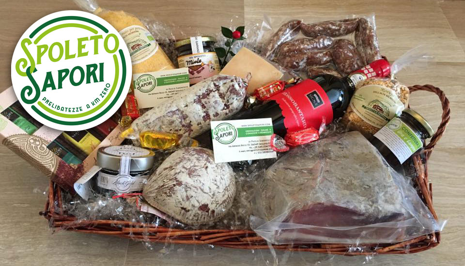 Anche quest’anno Spoleto Sapori ripropone, in occasione delle festività natalizie, la possibilità di regalare cesti gastronomici con prodotti a Km zero accuratamente selezionati da piccole aziende locali. Si parla quindi di tartufo, zafferano, formaggi, salumi, legumi e dolci tipici artigianali.