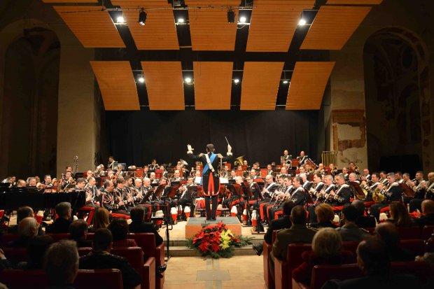 Classici e brani natalizi – Un repertorio suggestivo, con l’esecuzione di musiche natalizie quali Bianco Natale, Happy Christmas e Jingle Bells e dei più grandi classici composti da Wagner, Rossini e Verdi. I 102 musicisti hanno riscosso applausi a scena aperta concludendo il concerto sulle note dell’Inno di Mameli cantato in piedi da tutti i presenti.