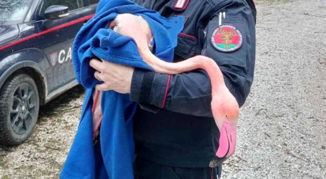 In quella porzione di faggeta, lunga circa 300 metri, erano presenti anche due fenicotteri ancora in vita ma fortemente debilitati, recuperati e avvolti in coperte dai forestali (nella foto) prima di affidarli proprio alle cure del CRAS. Proprio ieri (17 marzo) entrambi i “superstiti” sono stati liberati alle Saline di Cervia, luogo di nidificazione della specie.