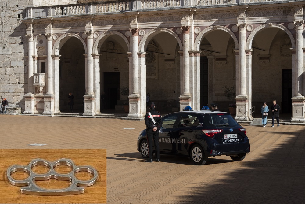 Al pronto soccorso i sanitari hanno riscontrato al malcapitato un trauma cranico rilasciando una prognosi di 20 giorni. L’arma bianca (nel riquadro della foto in home page il tirapugni utilizzato per l’aggressione) è stata posta sotto sequestro e i due, di 15 e 18 anni, denunciati in stato in di libertà alla locale Procura della Repubblica e a quella per i Minori di Perugia con le accuse a vario titolo di furto, lesioni personali aggravate in concorso e porto di oggetti o armi atti ad offendere.