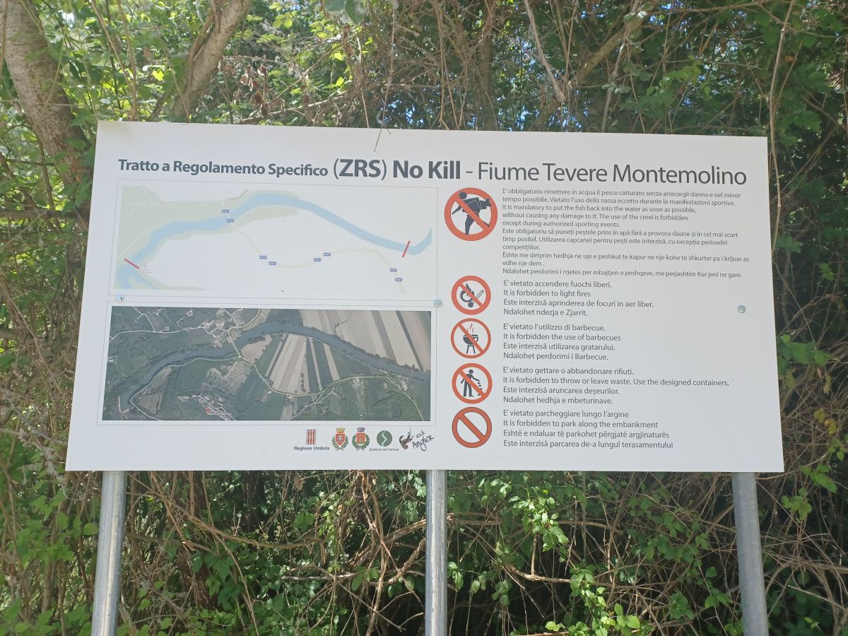 Grazie alla partecipazione al progetto “Natura Cultura e sentieri” e alla efficiente collaborazione con il Comune di Todi, sono stati finalmente installati i cartelli multilingue con le norme che regolamentano i comportamenti sia dei pescatori, che degli utenti dell’ecosistema fluviale. L’obiettivo di queste associazioni è rendere “No-kill” tutto il tratto del Tevere nel comune di Todi.