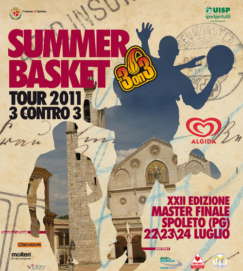 Spoleto ospita in Piazza Duomo il master finale dell’edizione 2011 di Summerbasket, il primo circuito estivo di pallacanestro “3contro3”, ideato nel 1990 dalla Lega Nazionale Pallacanestro dell’UISP, per fare in modo che ogni anno la pallacanestro sia giocata nelle piazze, nei centri storici, andando in mezzo alla gente.