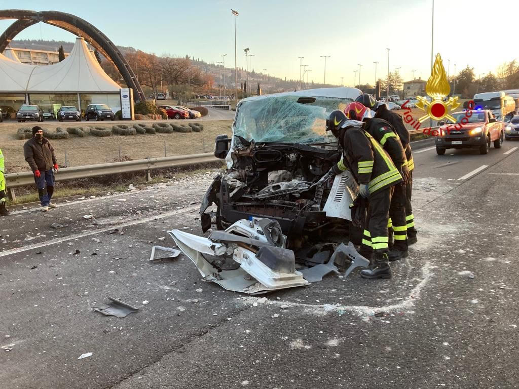 E’ stato trasportato in ospedale in gravi condizioni l’autista del furgone che mercoledì mattina ha tamponato due mezzi pesanti sul Raccordo autostradale, all’altezza dell’uscita di Corciano.