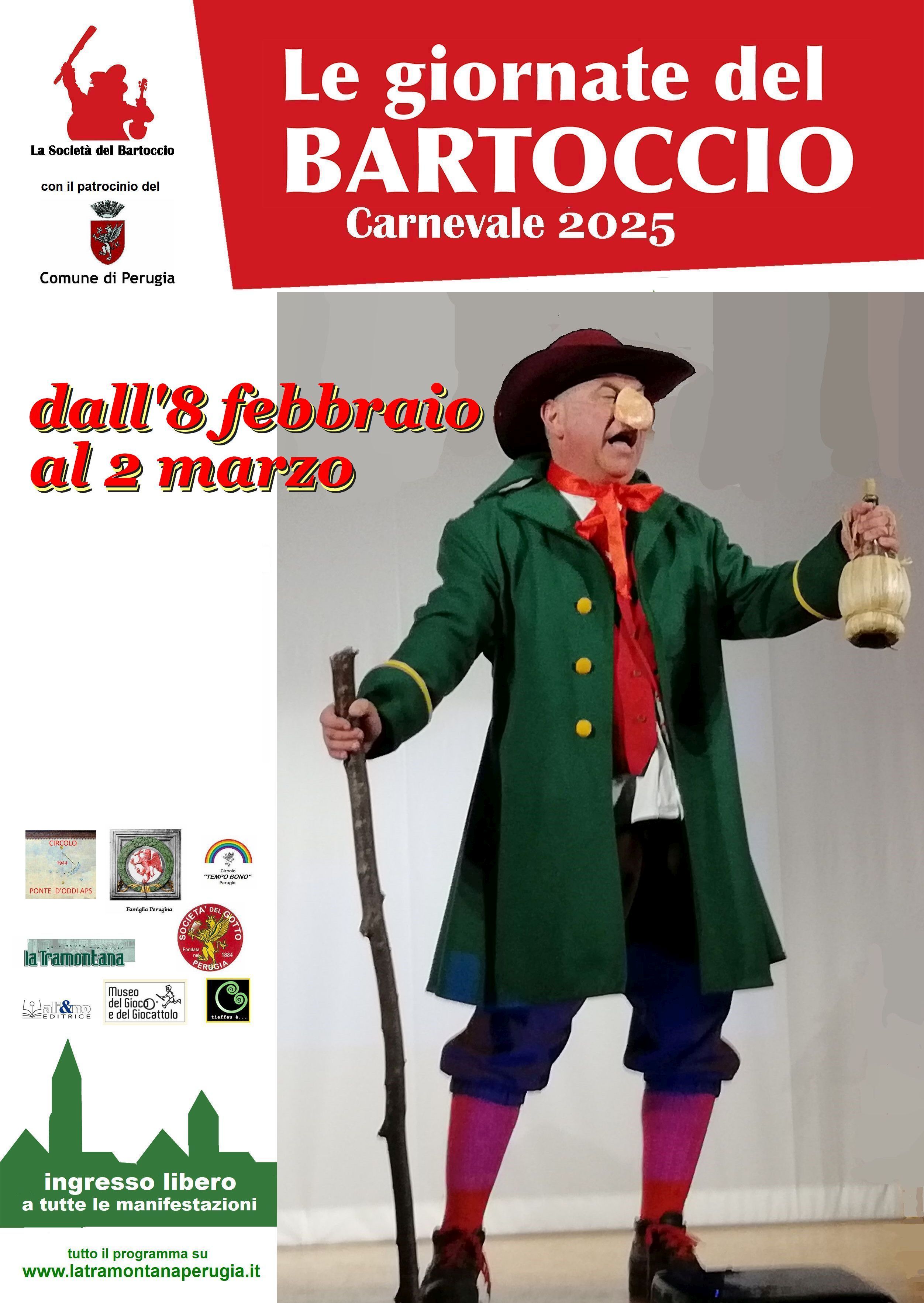 Il momento topico del carnevale sarà sabato 1 marzo con la Caminata del Bartoccio, una camminata allegra e scanzonata che partirà dal Crocevia di Corso Cavour per salire in centro e concludersi in via Mazzini, guidata ovviamente dal Bartoccio: una novità nel modo di celebrare l’ingresso triofale in città della nostra maschera, ma una novità che si inserisce nella vocazione pedonale della tradizione bartoccesca perugina.
