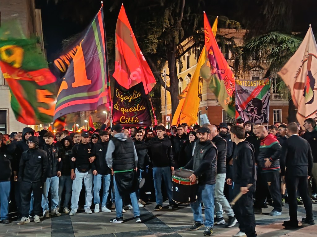 Grandi emozioni a piazza Tacito, dove Terni ha abbracciato la Ternana per i 100 anni di storia. Dopo una giornata di eventi per il centenario “Un secolo da fere” nella sera di oggi, 2 ottobre, la fontana di piazza Tacito si è illuminata di rossoverde, così come la facciata della Bct e la fontana di piazza Europa. Alla presenza della presidente Claudia Rizzo, cittadini e tifosi che con cori, bandiere e cuore hanno riempito la piazza, la fontana si è accesa di rosso e verde. “Terni è forte quando tutti sono uniti” – hanno urlato gli ultras che hanno salutato la presidente chiedendo “Rispetto per la nostra storia”. Molto emozionata la giovane Rizzo che non si aspettava questo tipo di legame tra città e squadra, che, invece, è una delle cifre distintive della città di Terni e della Ternana Calcio. “Sono molto emozionata – ha detto la presidente Claudia Rizzo – non mi aspettavo questo affetto e tutta questo calore da parte dei tifosi e della città. Faremo di tutto per essere all’altezza del nostro ruolo”.