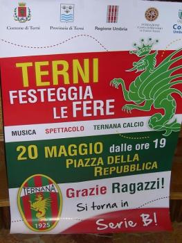 E’ stata presentata alla stampa stamattina in Provincia la festa in programma domenica prossima, 20 maggio, per la promozione in serie B della Ternana Calcio. Erano presenti il presidente della Provincia Feliciano Polli, l’assessore allo sport del Comune di Terni Renato Bartolini, il presidente della Fondazione Carit Mario Fornaci, il presidente della Ternana Francesco Zadotti, il presidente del Coni Umbria Valentino Conti, il presidente dell’ente Cantamaggio Omero Ferranti e il regista Folco Napolini. “Terni festeggia le Fere” è il titolo della serata che vedrà partecipare tutti i calciatori rossoverdi e i vertici della società. Condurranno la festa i giornalisti di Sky Luca Marchetti e Sara Benci e animeranno il comico Dario Ballardini, l’attrice ternana Camilla Ferranti e lo speaker ufficiale della Ternana Enzo Racioppa. Nel presentare la festa il presidente della Provincia di Terni Feliciano Polli ha rivolto un sentito ringraziamento alla Ternana, al presidente Zadotti e al patrono Longarini. “La vittoria del campionato – ha detto Polli – è frutto di un gioco di squadra in senso ampio che dimostra l’attaccamento della città alla Ternana e la collaborazione fra i vari soggetti, una collaborazione – ha detto il presidente – sulla quale puntiamo molto anche per il futuro. La festa – ha proseguito il presidente della Provincia – è un modo fresco e originale per sottolineare lo straordinario risultato ottenuto, che deve rappresentare anche uno slancio per il futuro, legando ancora più saldamente società, tifosi, città e territorio provinciale.” L’assessore Bartolini ha ringraziato la Ternana e la lungimiranza di Zadotti ed ha ricordato che “dopo anni travagliati finalmente si celebrano risultati importanti che riavvicinano società e città.” “Siamo orgogliosi del lavoro svolto – ha detto il presidente della Ternana Zadotti – abbiamo messo tanto impegno e tanto rigore in questo progetto e su questa strada proseguiremo, grazie anche al supporto della città e dei tifosi”. Il presidente della Fondazione Carit Fornaci ha elogiato la Ternana ed ha auspicato che la vittoria sia ben augurante anche per altri risultati, non solo sportivi.